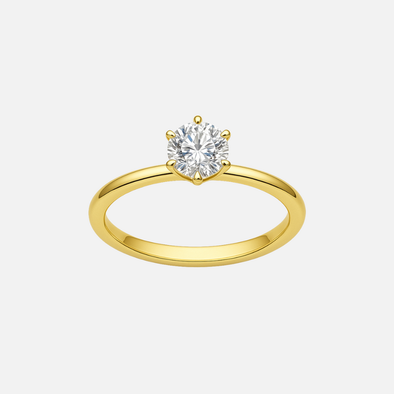 Cette bague de la collection Calvina séduit par sa sobriété majestueuse, un éclat unique qui incarne la grâce naturelle des moments les plus précieux.